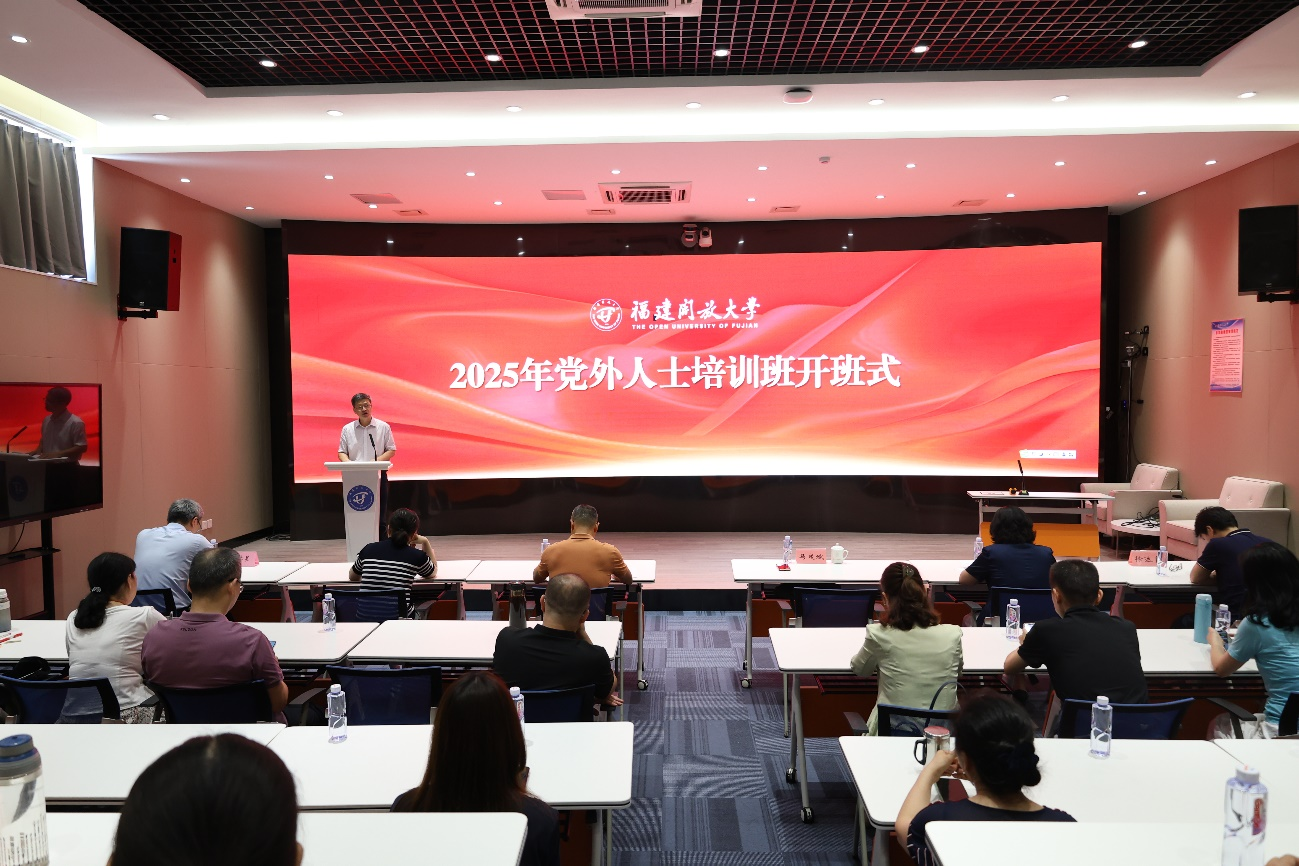 为深入学习贯彻习近平总书记关于做好新时代党的统一战线工作的重要思想,按照“学规定、强作风、树形象”主题教育部署安排,进一步提高党外人士政治理论素养和履职能力。6月26日-27日,福建开放大学举办2025年党外人士培训班。受校党委委托,党委副书记马成斌出席开班式并作动员讲话,各民主党派成员、无党派人士、党外知识分子联谊小组成员以及各基层党组织统战委员代表等参加培训。