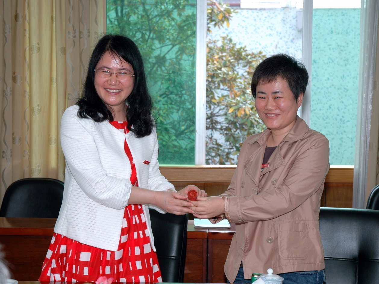福建电大党委书记马国防(右)与民盟福建省委会副主委刘泓(左)