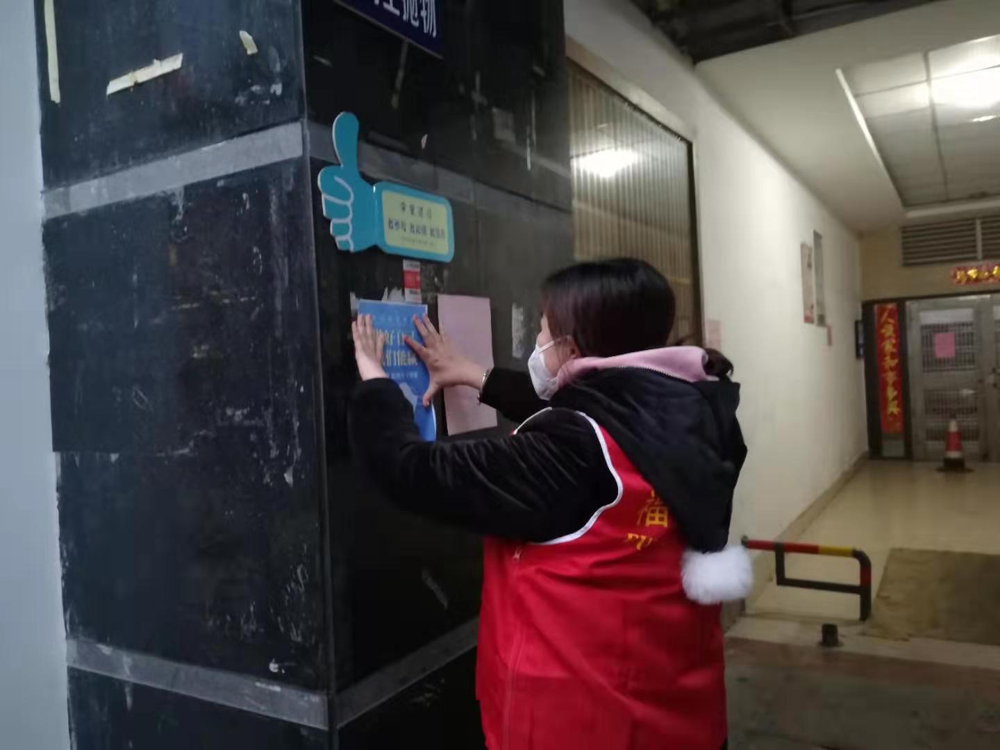 唐婕在辖区重要位置张贴新型冠状病毒肺炎宣传图片最新通告