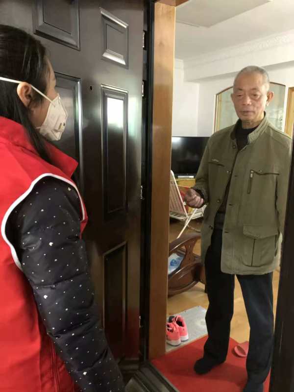 曾艳挨家挨户上门做防疫宣传