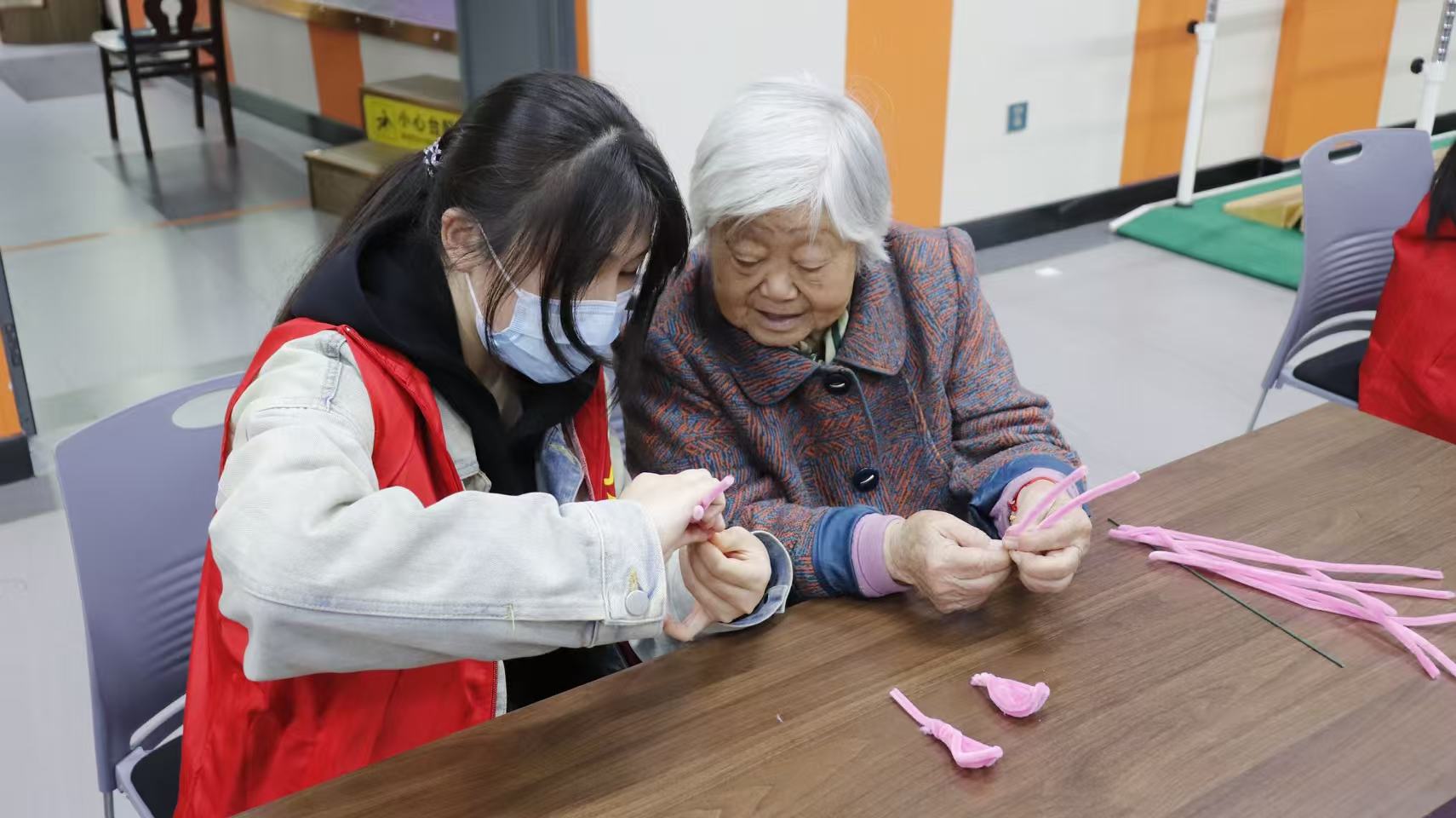除了包饺子,同学们还与老人们一起用扭扭棒制作郁金香,活动承载着对老人们的深情祝福,及对即将到来的妇女节的美好祝愿。在同学们的爱心陪伴下,老人们专注地学习,逐步完成了各自的作品,每一朵郁金香都凝聚了同学们的关怀与心意,当老人们手持自己亲手制作的花朵时,脸上洋溢着满足与喜悦的笑容。